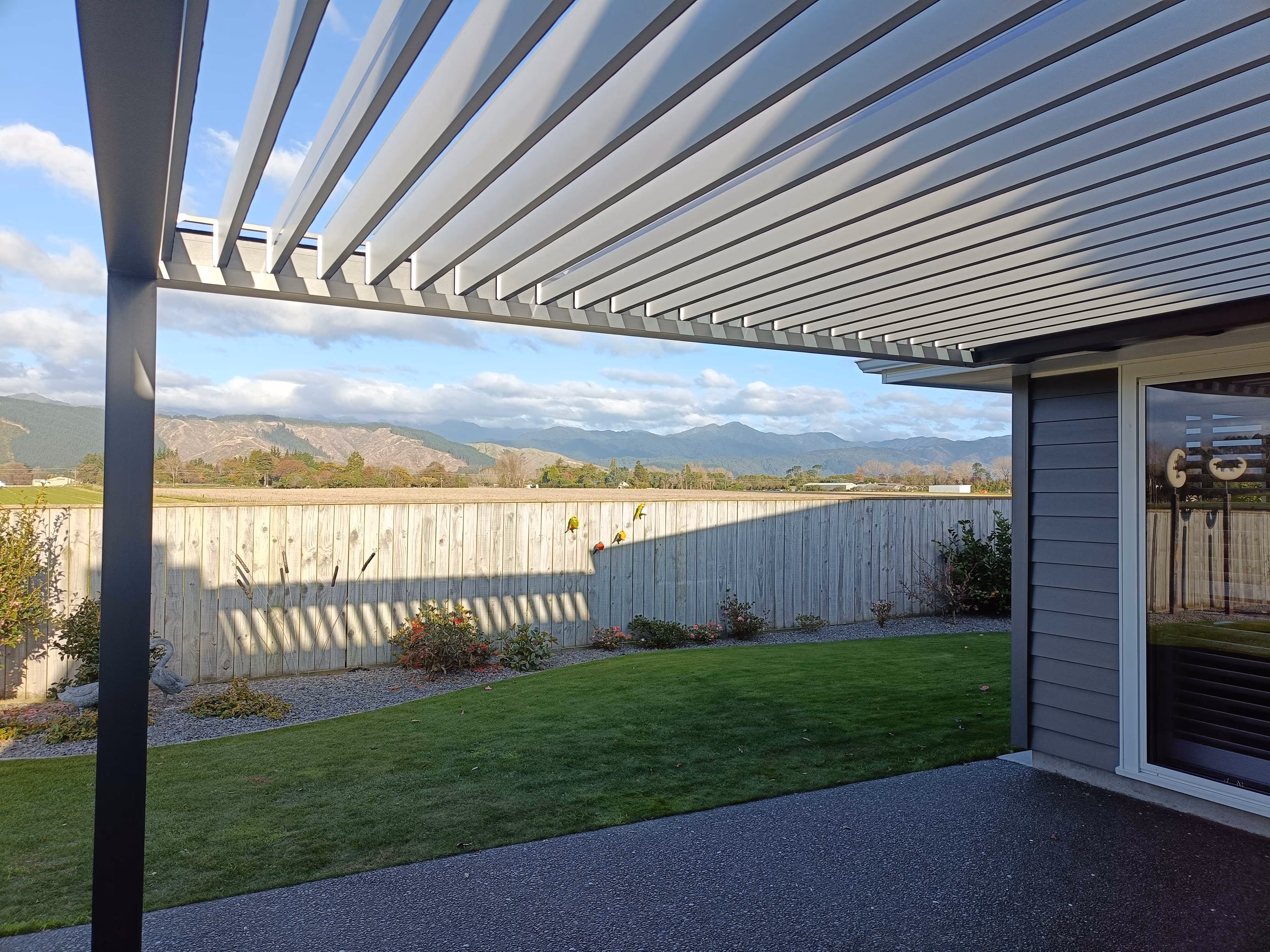 The frame is made from high-grade, powder-coated aluminum with AkzoNobel finish. The louvre blades are reinforced for strength, water sealing, and longevity in New Zealand’s weather.