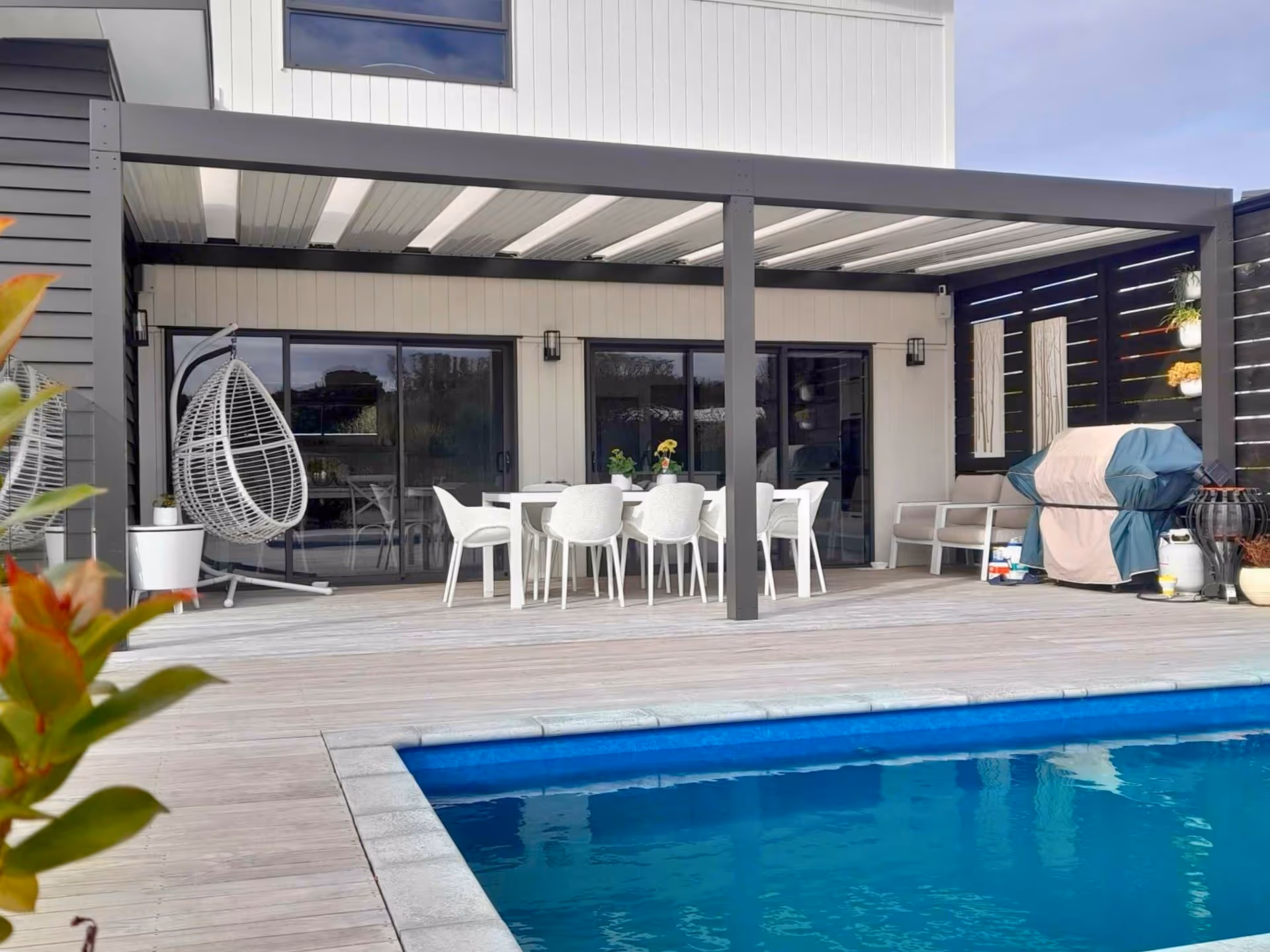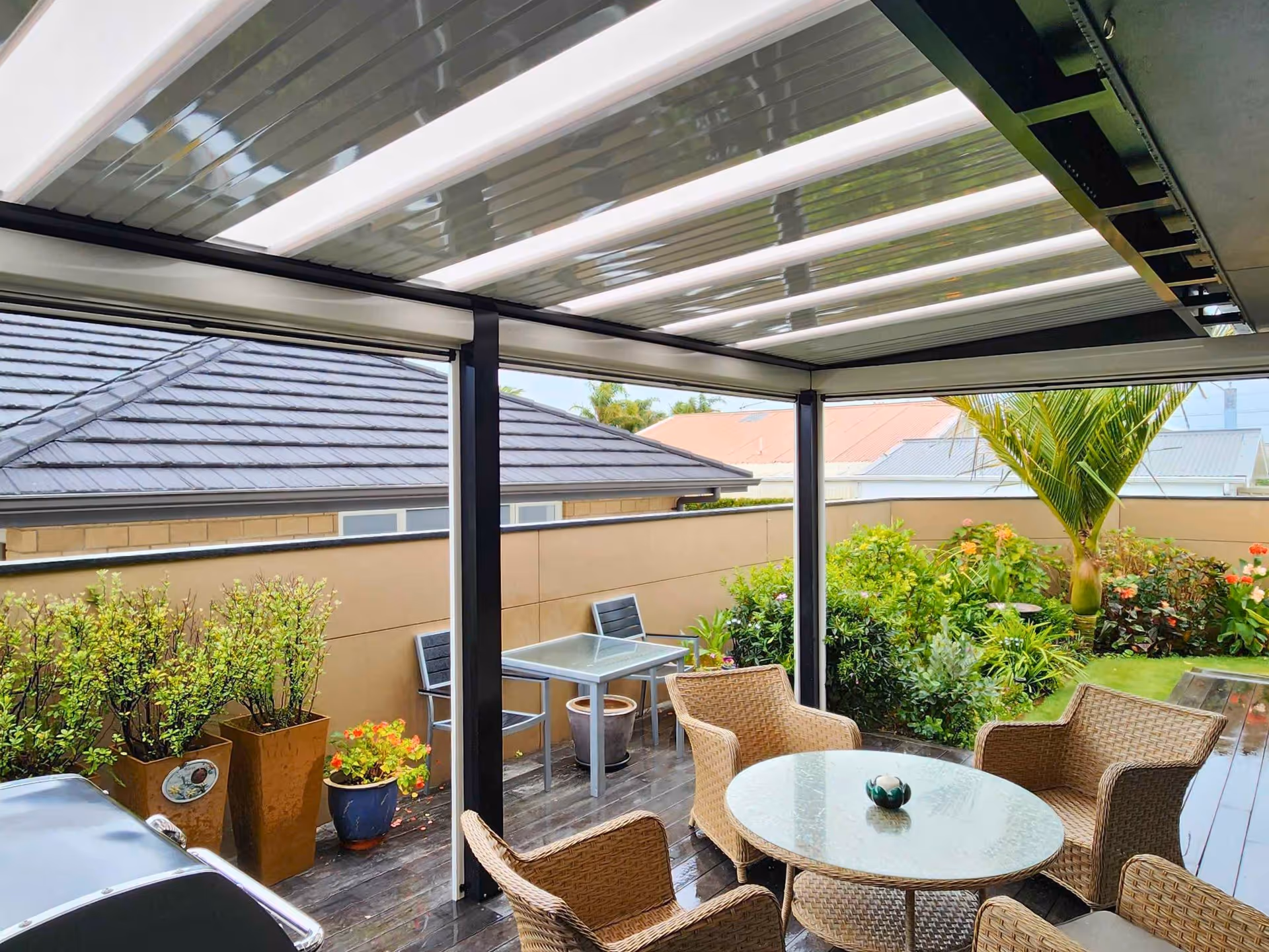Designed for year-round protection from sun, wind, and rain, it features light-diffusing roof panels and a heavy-duty frame built to perform in New Zealand conditions.